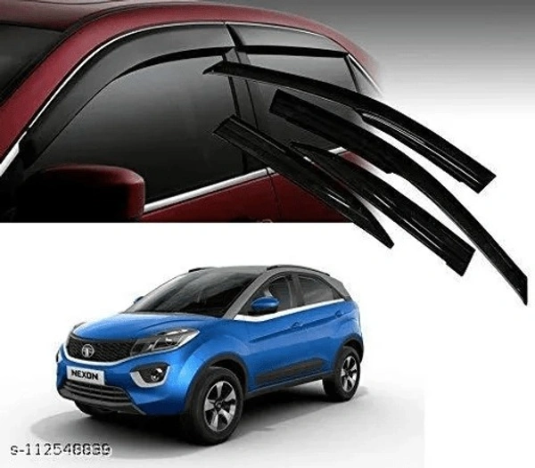 Vehicle Compatibility : TATA NEXON Material - ABS Plastic The car door visors also act as sun blockers from the side of the vehicle which can be comfortable to the driver or the passengers Door Visors enables natural air circulation inside the car while preventing rain, dirt and other external pollutants from entering inside the car. Material: High quality ABS plastic, Color- BLACK Quantity- Four piece/set