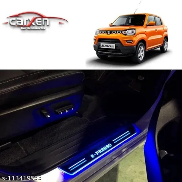 Name : Door Foot Step Led Sill/Scuff Plate With Mirror Finish for MARUTI S-PRESSO (Set of 4Pcs, Blue)
