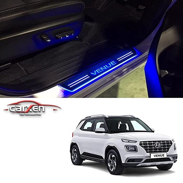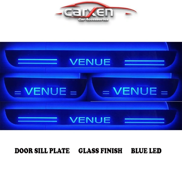 Car Accessories Door Foot Step Led Sill Plate for Hyundai Venue (Set of 4PCS, Blue)