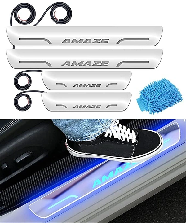 Car Door Foot Step Led Sill Plate Compatible for Honda Amaze(Set of 4PCS, Blue)
