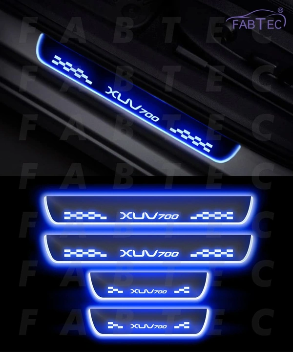 Car Door Foot Step with Mirror Finish Led Sill Plate Compatible for Mahindra Xuv 700 (Set of 4pcs, Blue)