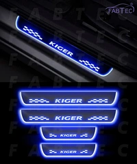 Car Door Foot Step with Mirror Finish Led Sill Plate Compatible for Renault Kiger (Set of 4PCS, Blue)