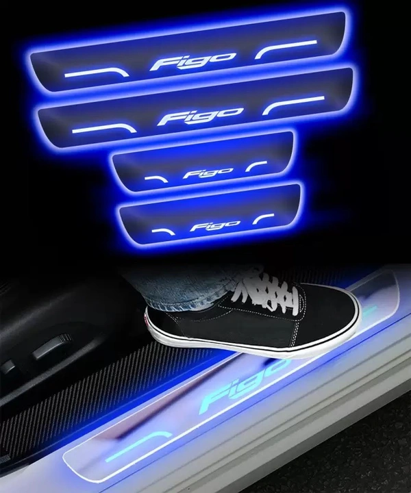 FABTEC (Pack Of 4) FIGO Blue Sill PLate Waterproof Premium Glass Finishing Look Car Door High Quality With Mirror Finish Foot Step Sill Plate Set of 4 Door Sill Plate